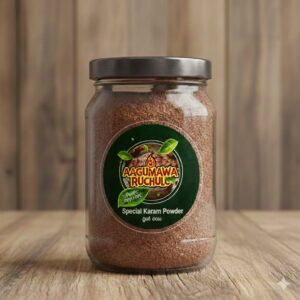 Aagumawa Ruchulu Buddala Karam Powder is a traditional spice blend prepared with roasted chana dal (buddalu), red chilies, and natural spices. Hygienically made using homemade methods, it offers a rich aroma, nutty flavor, and authentic taste. Available in 250g, 500g, and 1kg packs.